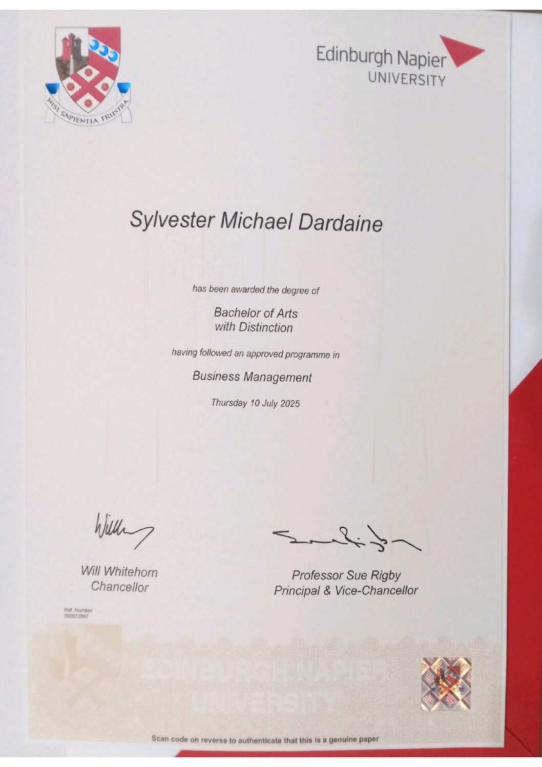 BA Business Management (General) Edinburgh Napier University โ Jan 2024 โ Dec 2024 Graduated with Distinction